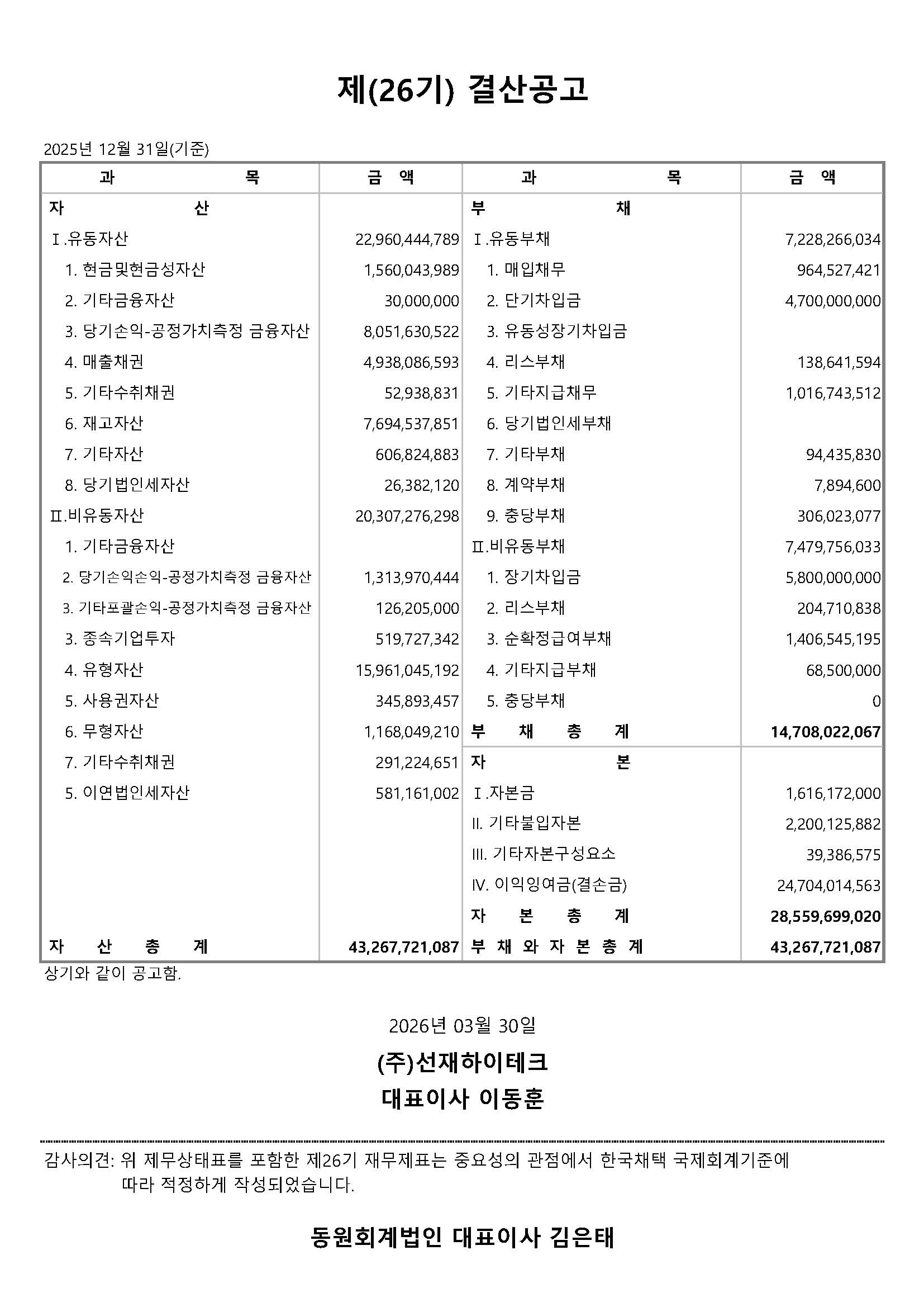 제 26기 결산공고 (2025년)